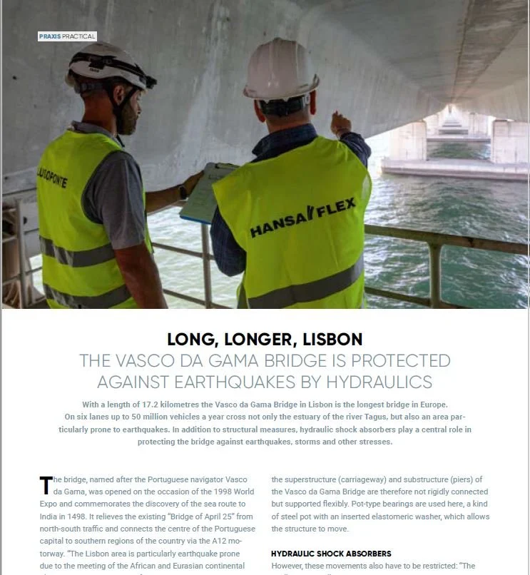 Manutenção de sistemas críticos para a segurança da Ponte Vasco da Gama em Lisboa. Cliente Hansa Flex Portugal